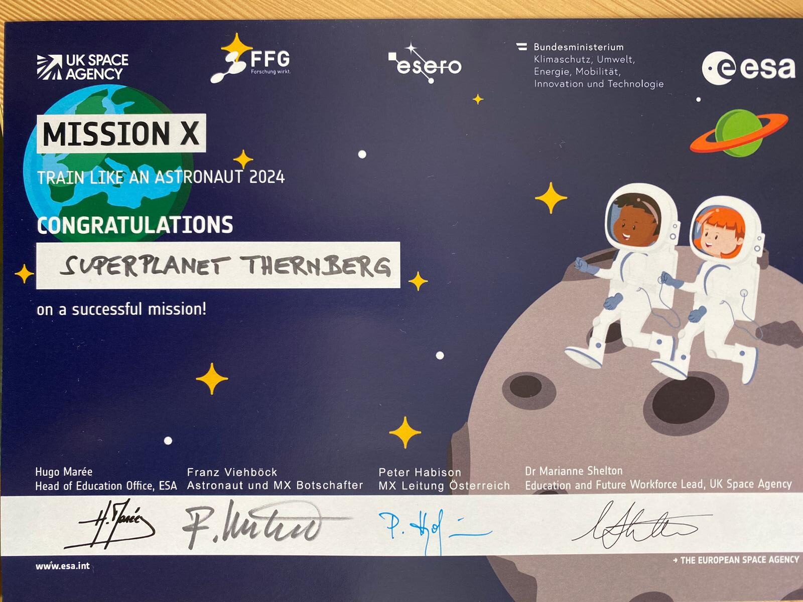„Mission X – Train Like an Astronaut“ ist ein internationaler Wettbewerb für Schulen, der von der amerikanischen und europäischen Weltraumorganisation NASA und ESA entwickelt wurde und der Kindern Spaß an Weltraumwissen, Bewegung, Sport sowie gesunder Ernährung vermitteln soll. In der aktiven Phase müssen die Kinder verschiedene Aufgabenstellungen und Missionen erfüllen, die über das Schuljahr verteilt sind. Die Volksschüler erbrachten bei den Challenges hervorragende Leistungen und erhielten dafür eine Auszeichnung – den Oscar „Bester Klassenbesuch der Mission X 2024“. Zuvor mussten sie verschiedene Aufgaben lösen, zum Beispiel im Werkunterricht eine Roboterhand basteln, im Sachunterricht einen Versuch mit Pflanzen machen oder das Online-Fotoprojekt „Schwing dich auf dein Weltraumfahrrad“ durchführen.